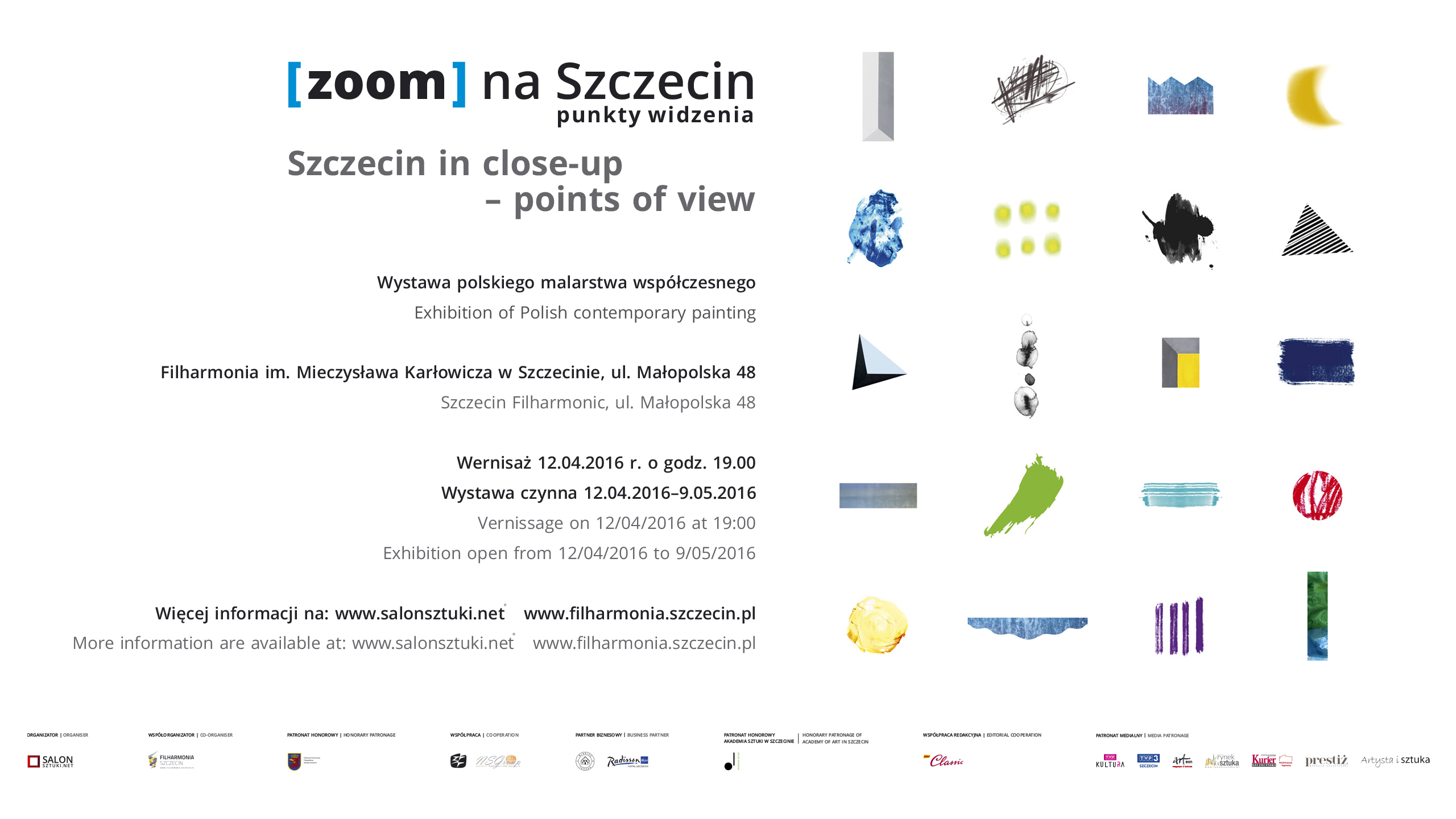 Wystawa Zoom na Szczecin – Punkty Widzenia w przestrzeni kultowego już, jak się okazuje, obiektu jakim jest Filharmonia Szczecińska prezentuje ogląd miasta przez pryzmat sztuki najnowszej. Dwudziestu dwóch zaproszonych artystów spoza Szczecina, zarówno cenionych twórców, jak i młodych, utalentowanych malarzy z całej Polski pochodzących z różnych miast (od Krakowa przez Łódź, Warszawę, Poznań po Gdańsk) przedstawia swoją artystyczną wizję Szczecina.